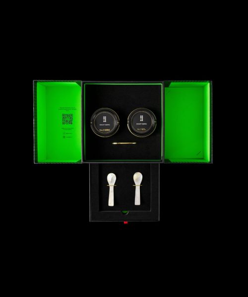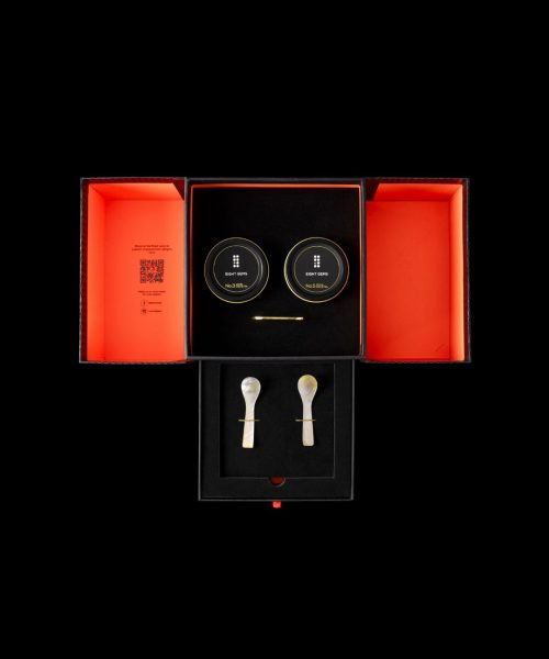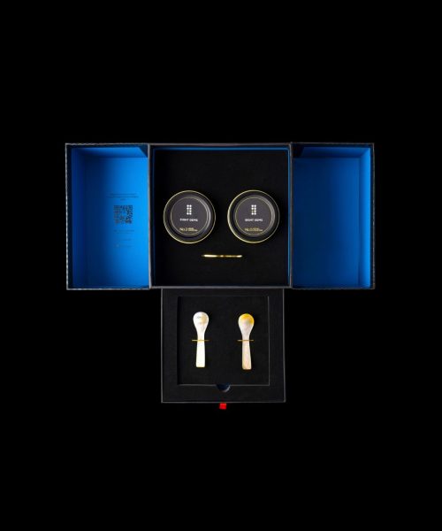 Each gift box comes with a pair of exquisite mother-of-pearl tasting spoons and one caviar key. Colours will be randomly selected, making every gift a unique surprise.